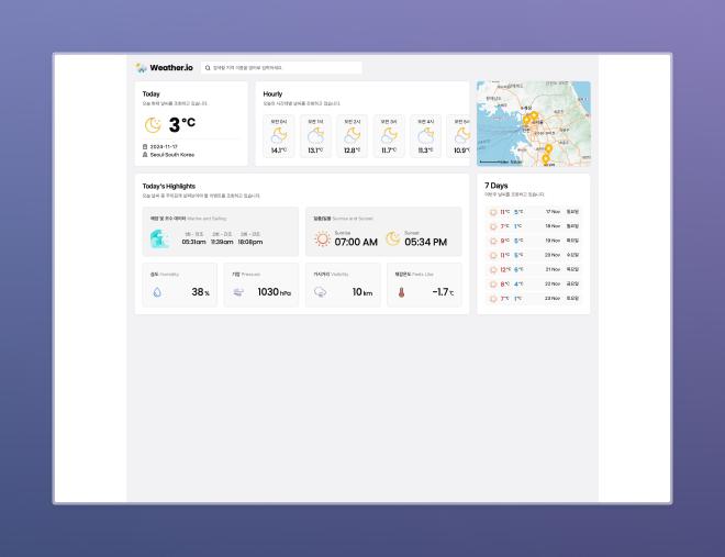 API 적용 도중에 무료 API를 사용해서 문제가 생기는 특이한 경험도 해봤지만 저는 문제가 없어서 이번 주차에서의 날씨 앱 대시보드 구현을 완성했습니다.